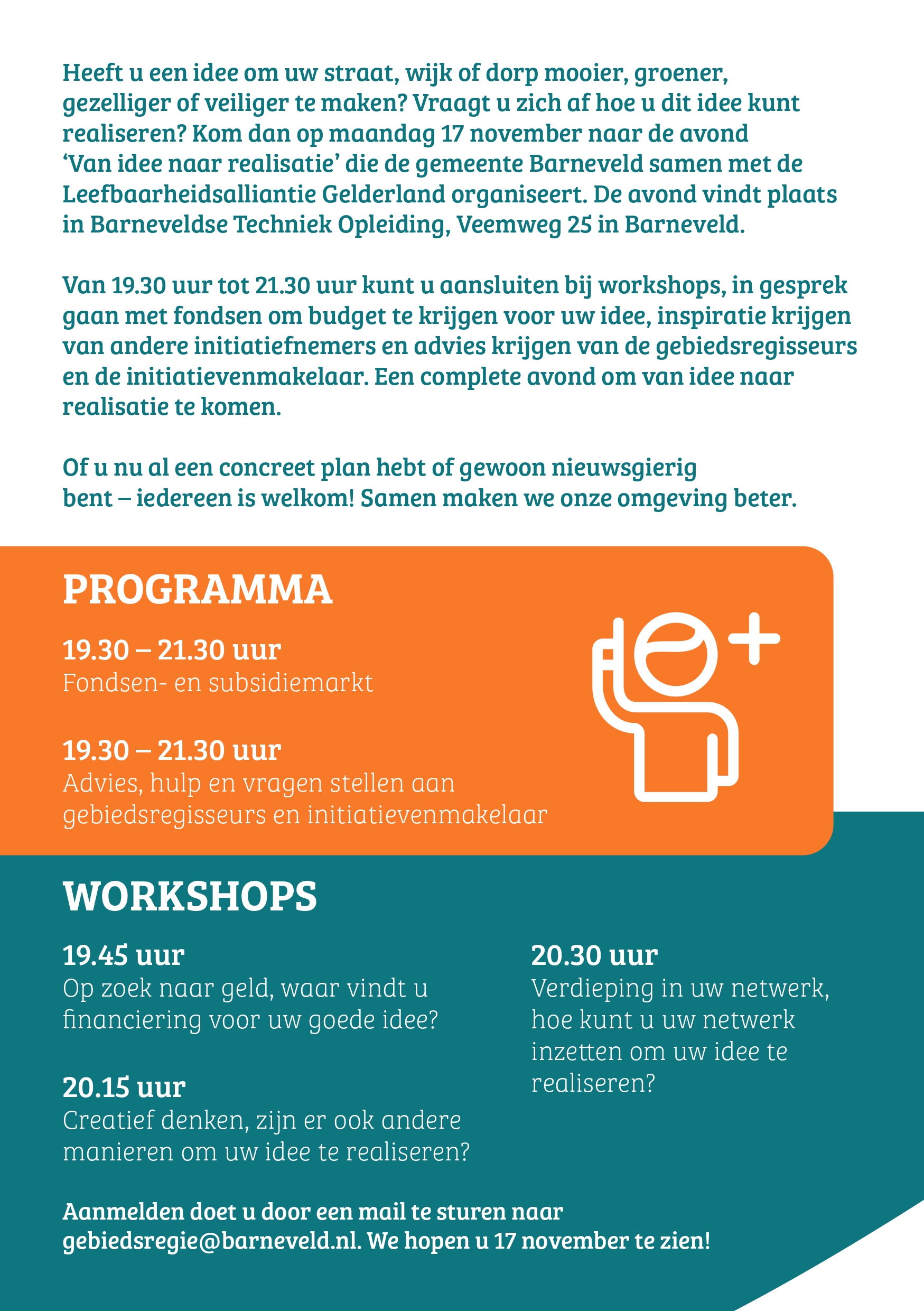 Aanmelden doet u door een mail te sturen naar gebiedsregie@barneveld.nl. We hopen u 17 november te zien!